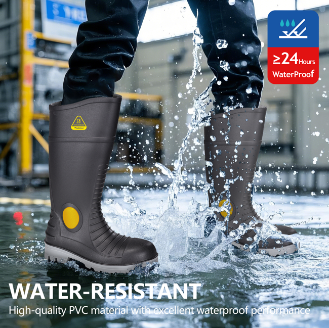 A1: Les bottes S5 sont faites de matériau PVC étanche de haute qualité, empêchant efficacement la pénétration de l'eau. Même dans des conditions humides ou pluvieuses, vos pieds resteront secs et confortables toute la journée.
