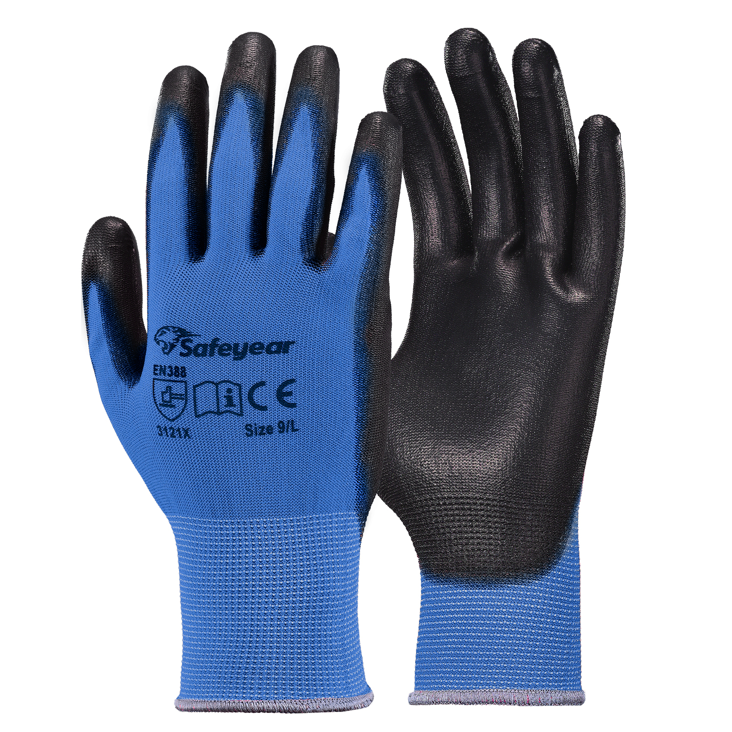 Gants de travail robustes enduits de PU PN8003 bleu